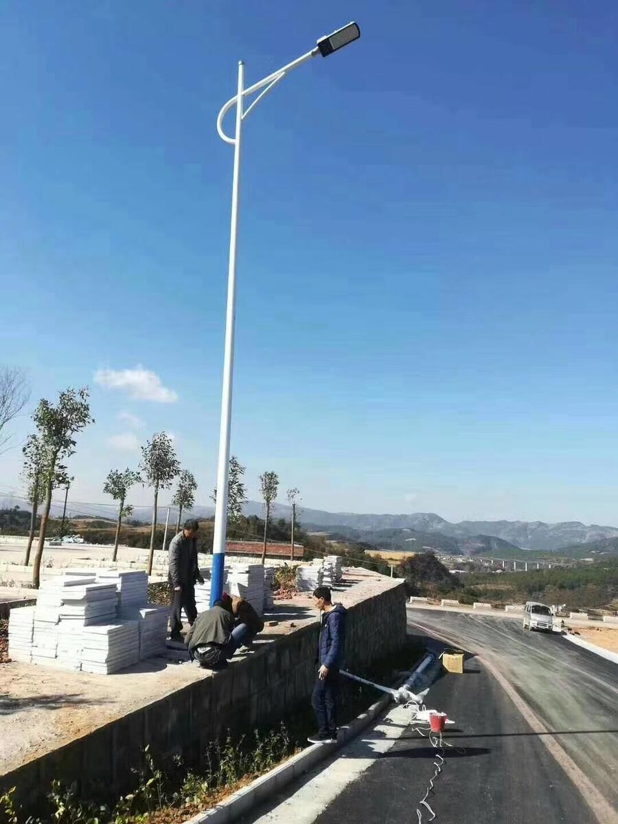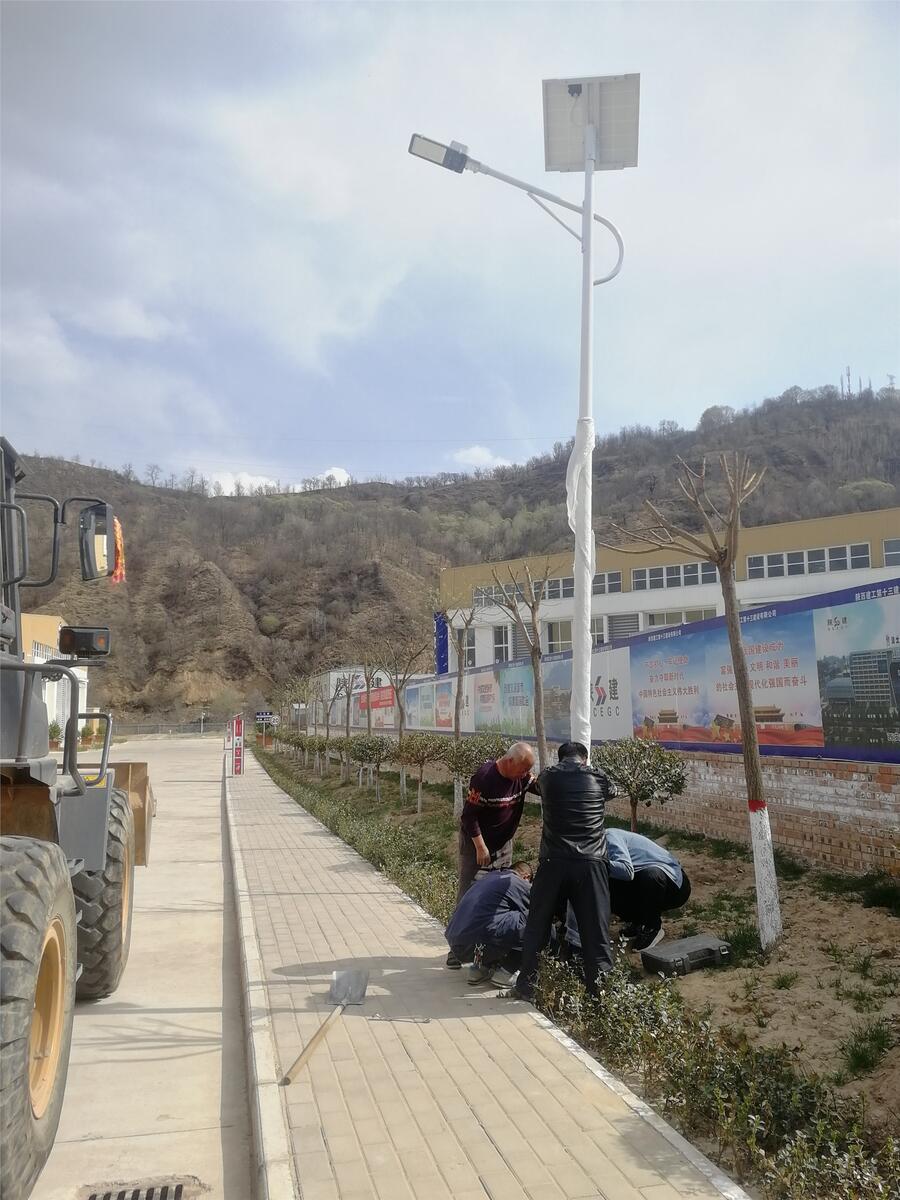 太阳能路灯灯杆的安装应符合相应的国家的安装规程和安全规程中的有关规定。灯杆安装前应根据灯杆高度、重量、现场情况选择合适的吊装设备,吊点位置及移位和校正方法,报监理工程师批准;灯杆安装时,应在互相垂直的两个方向配备仪器检查、校正以确保灯杆位置正 确,杆身垂直。