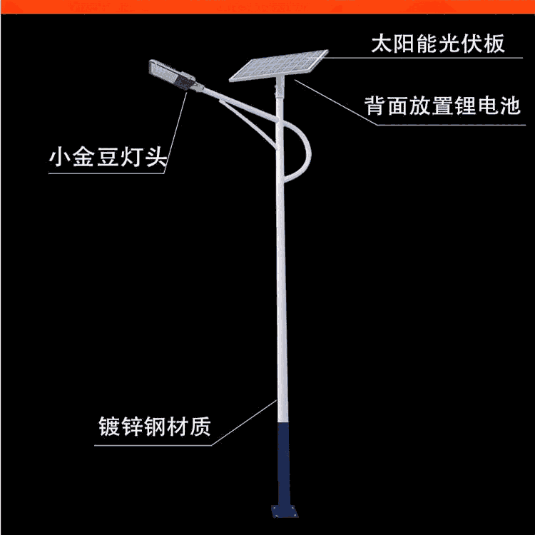 灯杆的高度一般为6-8米。当然,还有借助电线杆和墙壁的集成壁灯,其形式多种多样,为农村地区提供了极大的便利。新农村地区太阳能路灯的基本配置如下: