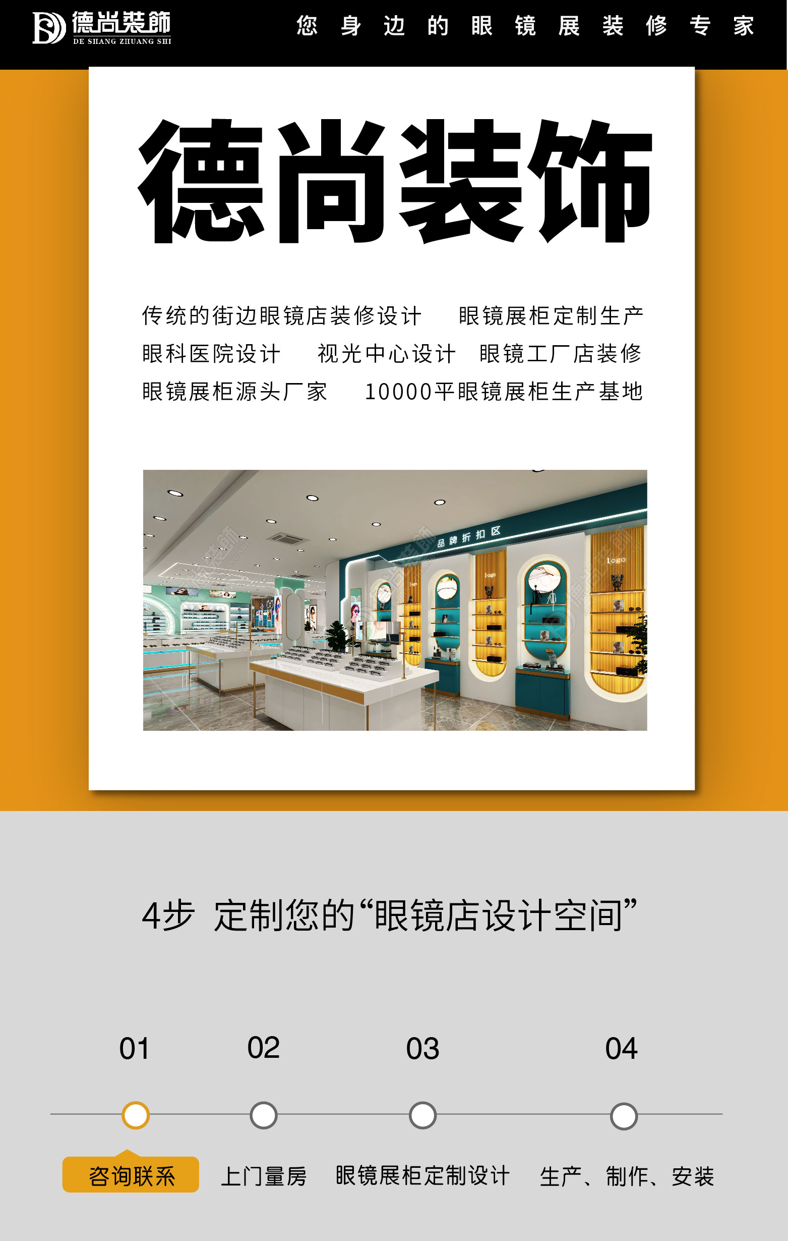 眼镜柜台生产眼镜店效果图设计玻璃展示柜定制德尚装饰