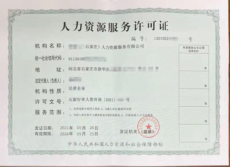 2、经区行政审批局审核、实地考察无误,发放《人力资源服务许可证》。