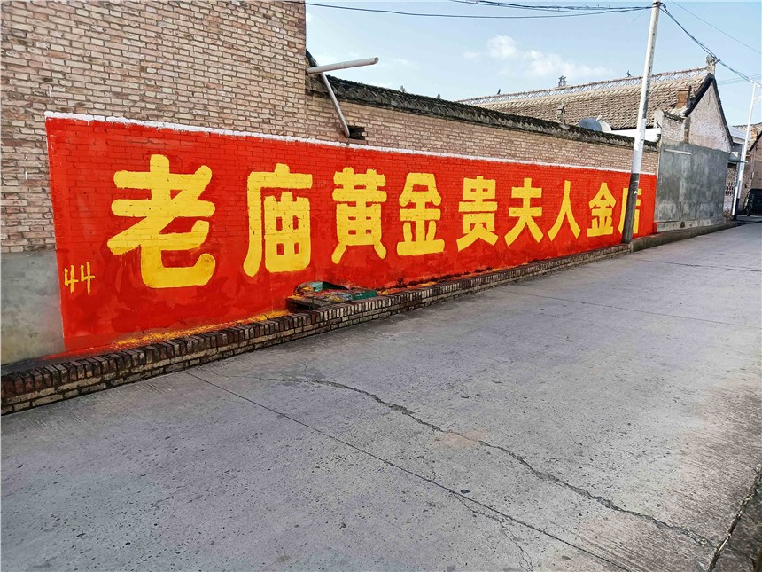 墙体广告版面设计多以纯色为主,色彩鲜艳、醒目,广告文字简洁明了,通俗易懂,没有繁杂的情景画面干扰主题。进军农村市场的市场必经之路。相比一 线城市,基层市场的信息接触途径相对较少,根据相关调查结果,看电视和听广播仍然是农民经常的媒介接触活动,而身边的户外媒体,除了墙体广告别无选择。因此,作为媒介组合的重要组成部分,墙体广告在三到六线市场尤其是广袤的农村地区就成为品牌推广的必选项。