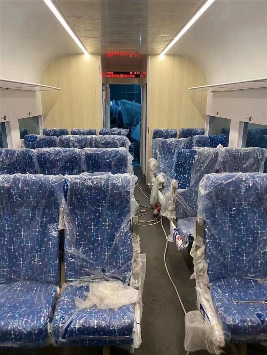 2、配备二等座:模拟真实高铁8排3+2布局或2+2布局,不带旋转,背面有logo枕巾,可调式座椅靠背装置,座椅安全带,餐桌板,座椅靠背后面有网兜。座椅的长度约为(mm)980±10;座椅的总宽度约为(mm)560±10;座椅的高度约为(mm)1173±10;坐垫离地高度约(mm)430±10;坐垫的宽度约为(mm)435±10;扶手离地高度约(mm)610±10;座椅靠背的宽度约为(mm)430±10;座椅靠背的角度调整为90-115度,配备小桌子。全新大型高铁模型生产厂家