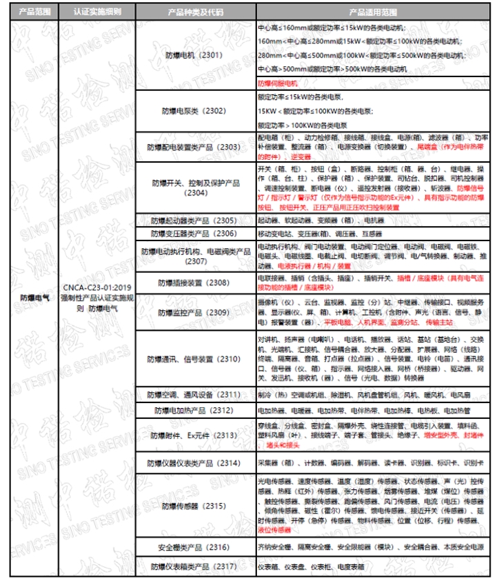 在这里就要区别下防爆3c认证的目录都有哪些?根据2021年新的公告确认,新的防爆3c认证的产品目录如下: