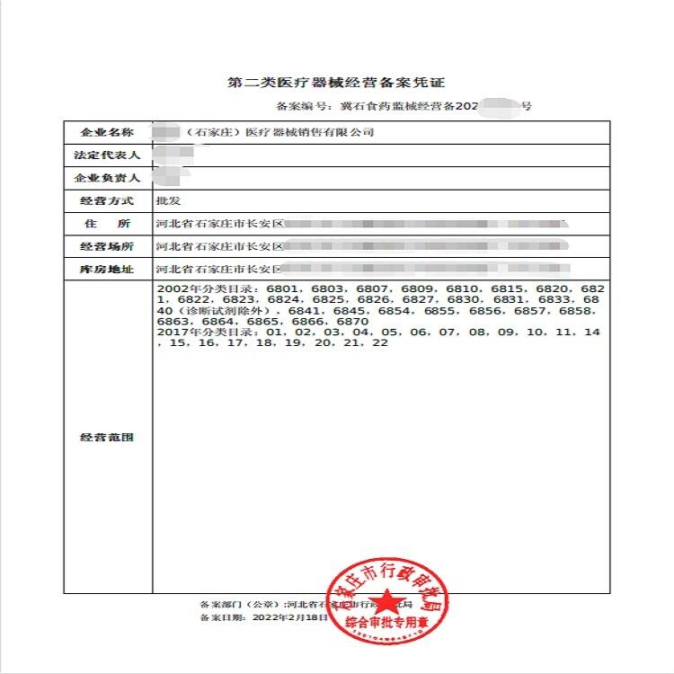 张家口二类医疗器械经营备案凭证,二类医疗器械经营备案凭证,医疗器械一类二类三类,二类医疗器械网络备案,二类医疗器械经营备案证,河北二类医疗器械网络备案都要什么资料