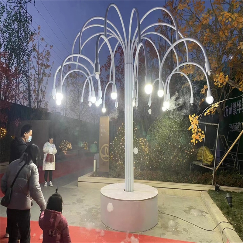 烟泡树整个装置为一个大型树状雕塑,也可以定制别的造型,有20~30根不等的树枝组成,每一根树枝都在源源不断地吹泡泡。