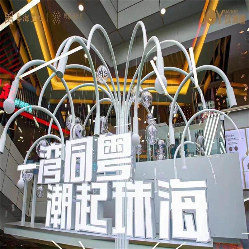 烟泡树,寓意春天的乐观主义和季节带来重生之感,由一系列白色的管道聚集而成,形成一棵树的形状。在每个“树枝”的末端,能够“长出”充满烟雾的半透明气泡,缓慢地落向地面,在与人们接触的瞬间获得美妙的回忆。具有愉悦动感的树形景观,持续不断垂落白色的泡泡,吸引人群驻足注目与体验,传播和提升目标品牌价值。