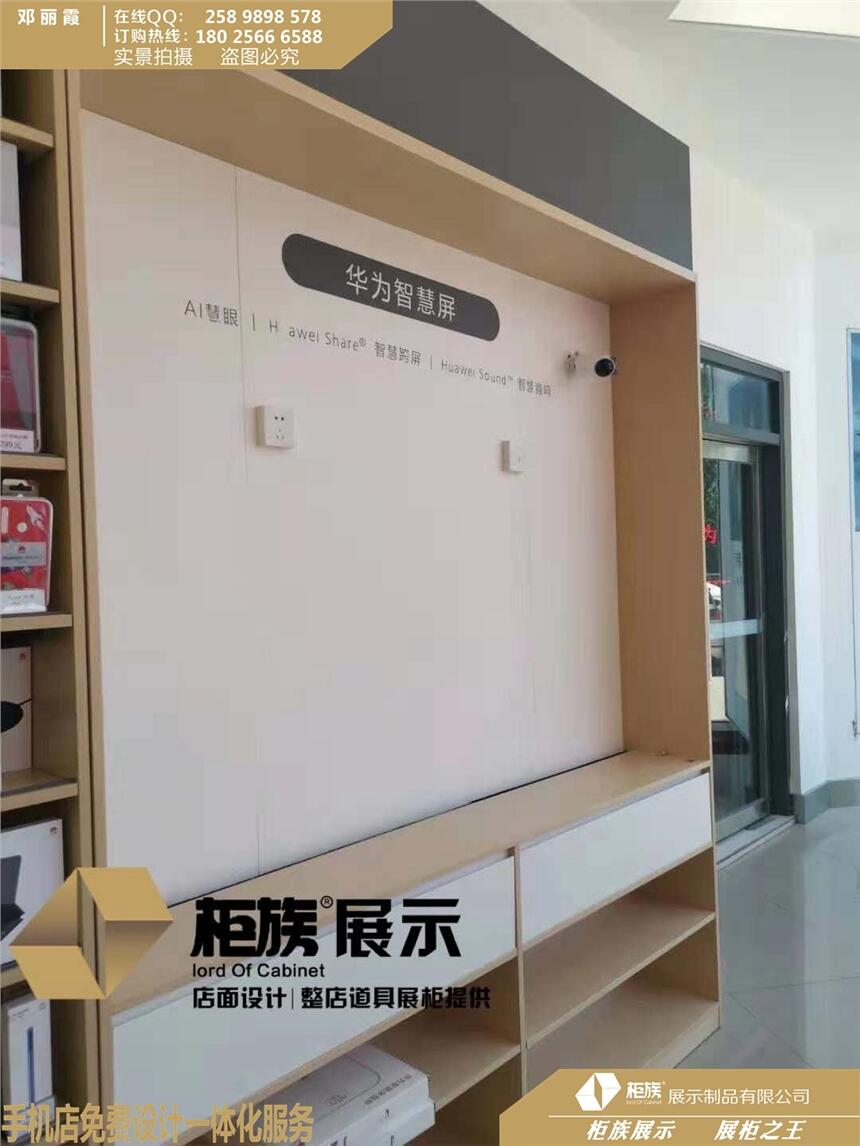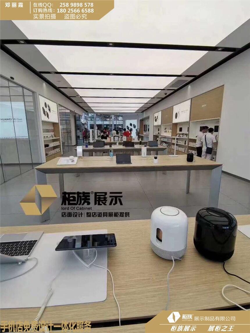 新款华为手机店手机柜台顺序摆放装修效果充满着低调自然的质感,天花板设计采用的是灰色的风格,明亮的吊灯提升了整个空间的亮度,中间展示架采用的是白色和木纹色两种格调的设计,俏皮可爱的质感凸显了出来。墙壁上展示的软膜灯箱设计很好的介绍了产品并做到了宣传,地板是白色的瓷砖的拼接设计,清新优雅的舒适度凸显了出来。