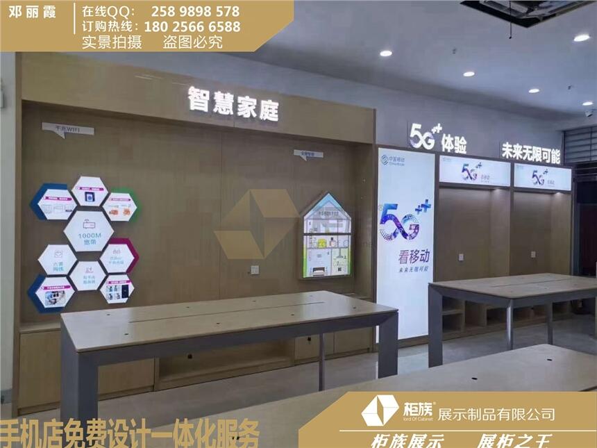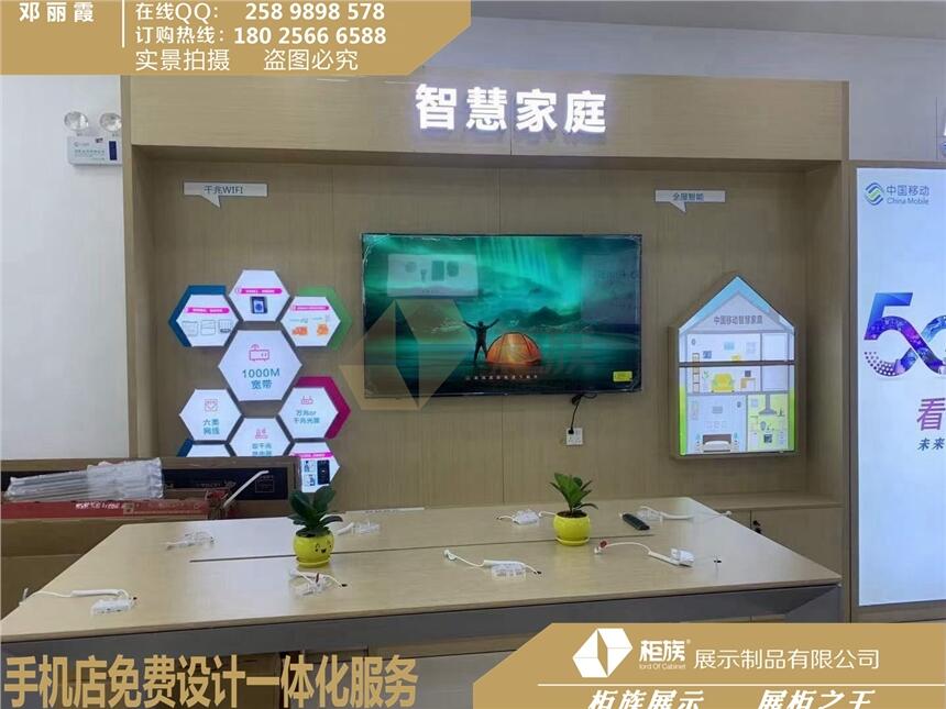 2020年中国移动5G智慧家庭电视柜展示墙制作厂家柜族展示制品有限公司,有完整规范的工作体系,通晓工艺流程的资深项目人员,完善的制作厂房,严谨的专业质量管理系统;这些都能满足客户订做手机柜台的要求,而且在难度大的客户-苹果手机柜台的高要求,我们拥有一支有十多年施工经验,各工种齐备的施工队伍以及先进的生产设备,确保了客户能得到最合理的手机柜台价格,可靠的还是质量,有很多手机柜台厂家为了吸引客户,以低价格,但要求又达不到。一个成功的手机展柜制造,需做到以下几点:充沛且合理地使用特有空间;完成陈设商品的实用功能;外观美丽新颖,吸引注意力,给人好感;附合商家需求。 手机体验桌就选我们的!
