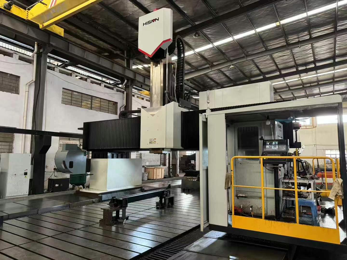 海天动柱龙门五面加工中心型号GZU50M×150,X轴行程15000mmY轴行程5400mm,Z轴行程1500mm机床重量:160吨