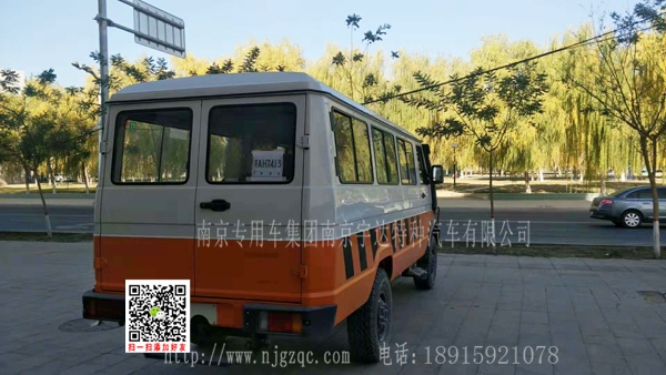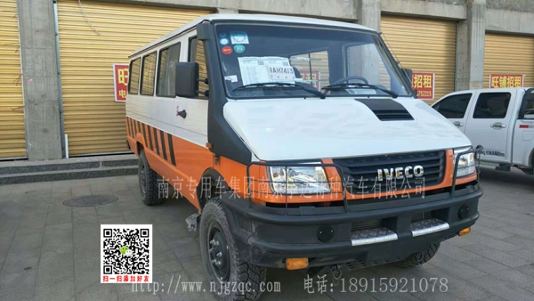 本车型主要采用依维柯系列底盘改装。底盘前后均匀非独立悬挂,非断开式转向式前桥,锻制整体工艺梁,使转向更加灵活、平稳。非断开式驱动后桥,整体冲压焊接桥壳、全浮式半轴使稳定性、平稳性大大提高。真空助力双回路液压制动、冷暖空调使驾驶更安全、舒适。整车配备有车顶行李架等设备。
