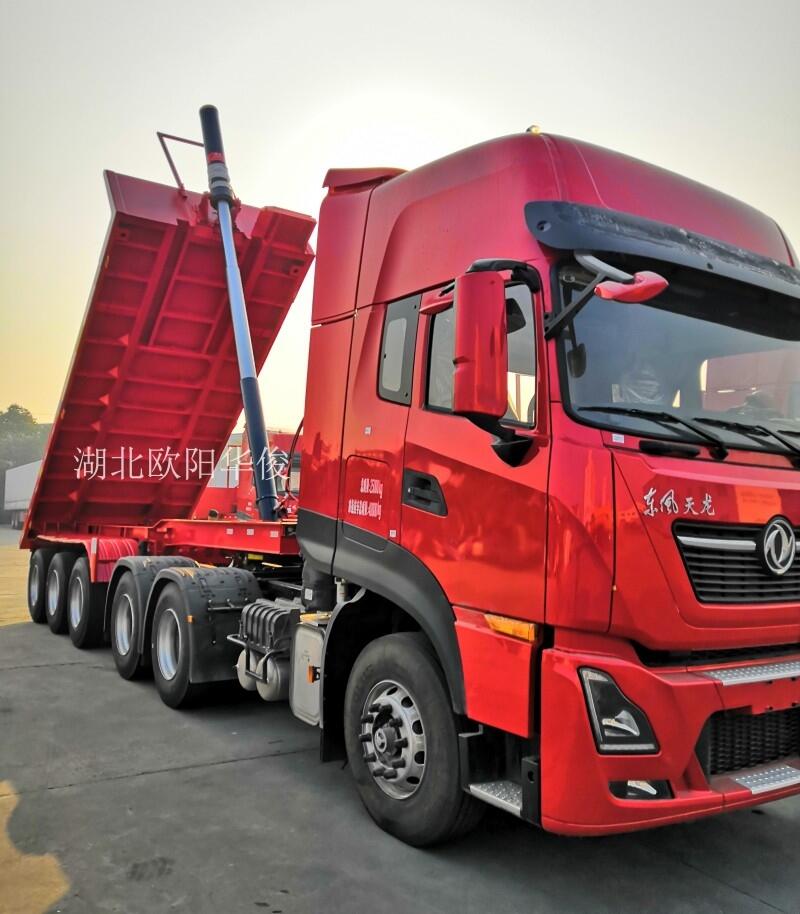 【车型优点】:本车载货能力强,可适应多种路况,具有举升高度高,卸货快等特点,多缸举升,具有多拉、重载等特点;由于装载车厢能自动倾翻一定角度卸料,大大节省卸料时间和人工劳动力,缩短运输周期,提高生产效率,降低运输成本。