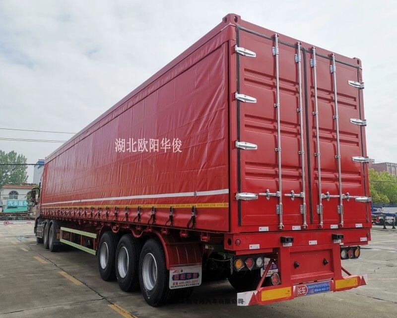 祝贺聂总喜提两台骨架半挂车+篷布侧帘车厢上装(配套),愿它们与您一路相随,平安如意!2台完工发车的骨架半挂车配篷布侧帘车厢在欧阳华俊厂区格外的养眼,靓丽,别具一格。湖北欧阳华俊半挂车厂家在湖北省枣阳市316国道优良河工业园。