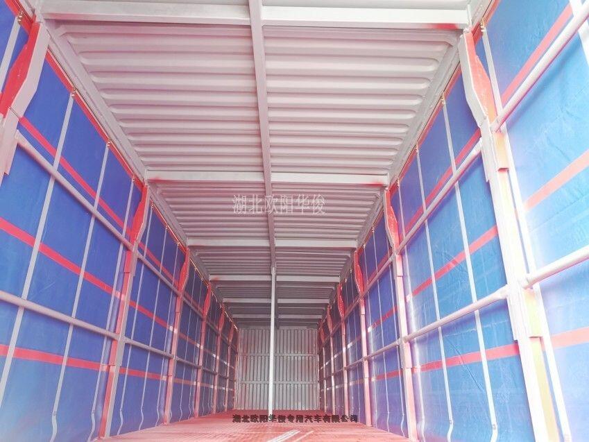 篷布式侧帘骨架半挂车的用途及优势:主要用来配送啤酒、饮料、矿泉水等瓶装的,包装纸箱或者硬塑料箱包裹的食物、饮料、药品等较轻的货物。相对于全封闭的厢式半挂车侧帘半挂车更适宜装卸轻质货物,让装卸工人直接从车体两边卸货,免去了反复进出厢体内部的麻烦,效率更高。