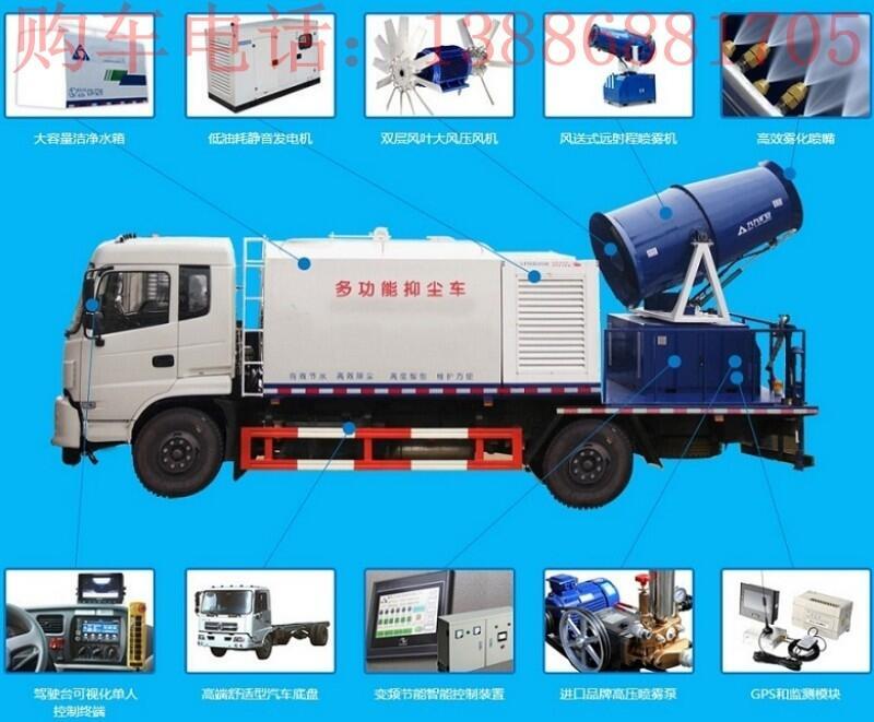多功能喷雾抑尘车可根据用户安装需求配置为固定式、塔架式、升降式、牵引式和车载式等多种型式;控制方式也可根据使用需求配置为远程中控+现场遥控的操作方式,远程中控时,有相关监控探头实时传回现场画面,根据监控画面对设备进行相关操作。只要远程中控不主动取得设备控制权,现场遥控均可自由操作;或选用现场手动操控和多种控制等结合方式;这些方式起动快捷、使用安全、灵活方便;配置方式也可根据使用需求配置为星三角启动、软启动和变频控制等多种控制方式。车载式远程射雾降尘空气净化设备为变频控制。