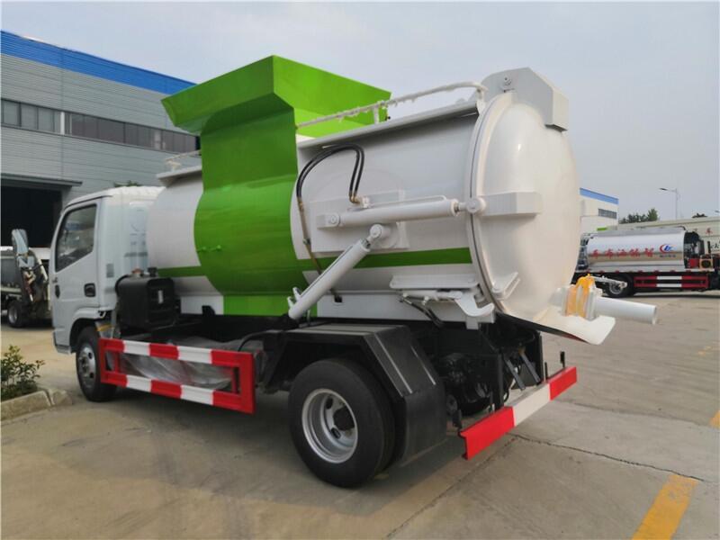 餐厨垃圾车是用来收集转运餐馆食堂酒店饭店餐厨垃圾的一种专用汽车。根据外观样式分为罐式餐厨垃圾车和厢式餐厨垃圾车,根据功能结构不同分为简易的收集转运车和带有滤干挤干功能的多功能餐厨垃圾车等。可以根据需要搭配240L垃圾桶,或者专用泔水桶使用,带有挂桶提升机自动收集倾倒,可以根据需要选装吸污车功能或者自清洁功能,选装箱体加热功能,选装真空抽吸功能,接受客户配置定制。