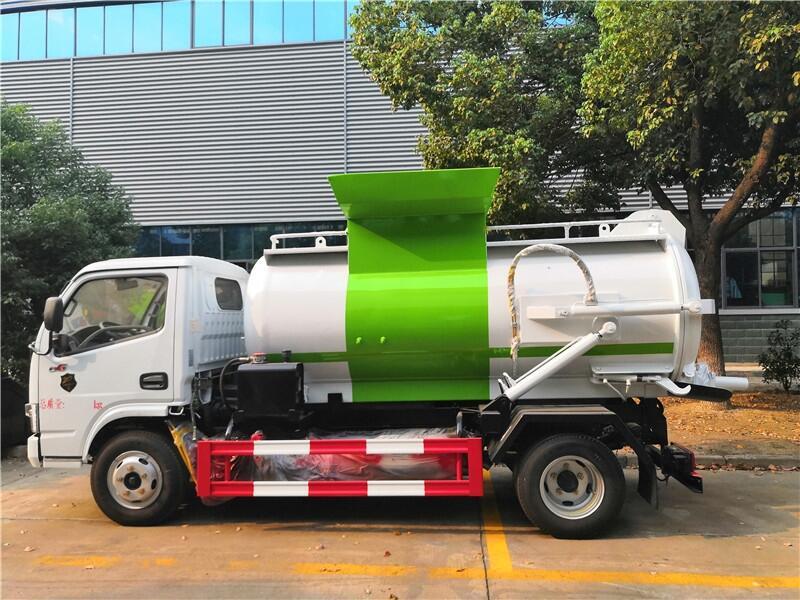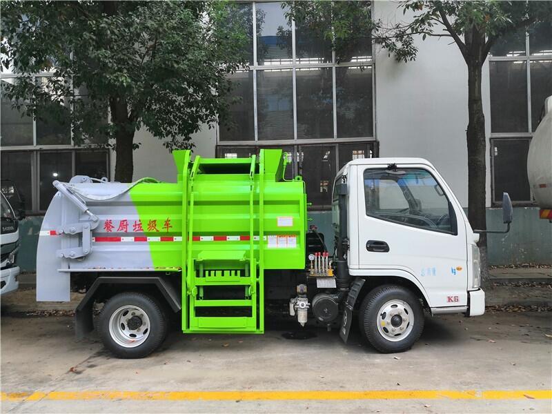 餐厨垃圾车是用来收集转运餐馆食堂酒店饭店餐厨垃圾的一种专用汽车。根据外观样式分为罐式餐厨垃圾车和厢式餐厨垃圾车,根据功能结构不同分为简易的收集转运车和带有滤干挤干功能的多功能餐厨垃圾车等。可以根据需要搭配240L垃圾桶,或者专用泔水桶使用,带有挂桶提升机自动收集倾倒,可以根据需要选装吸污车功能或者自清洁功能,选装箱体加热功能,选装真空抽吸功能,接受客户配置定制。