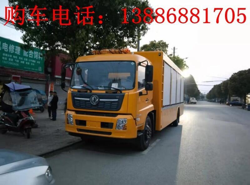 设备采用东风底盘改装,总质量12.5吨,发动机功率127kw,排放标准达到国五标准,3.8米轴距,带空调,方向助力,涉水深度600mm。