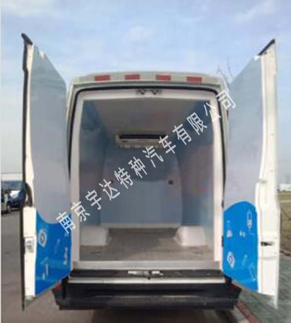 ABS系统控制器型号:BOSCH ABS9, ABS系统控制器生产企业:BOSCH公司。发动机净功率93KW。选装侧拉门,后门选装双道门结构,选装制冷机组顶置;可选装其它功率相同制冷机组,选装前雾灯,选装高位制动灯和辅助照明。当冷机组外机底置时总外高为2755mm,当冷机组外机顶置时总外高为2950m。车厢内加装足有够强度的人货隔离装置。侧防和后防与车身为一体,材质为金属,离地高度为411 mm。