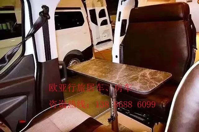 房车驾驶室是2+1的座椅模式,副座椅可旋转使用,与后方卡座形成对坐的模式。