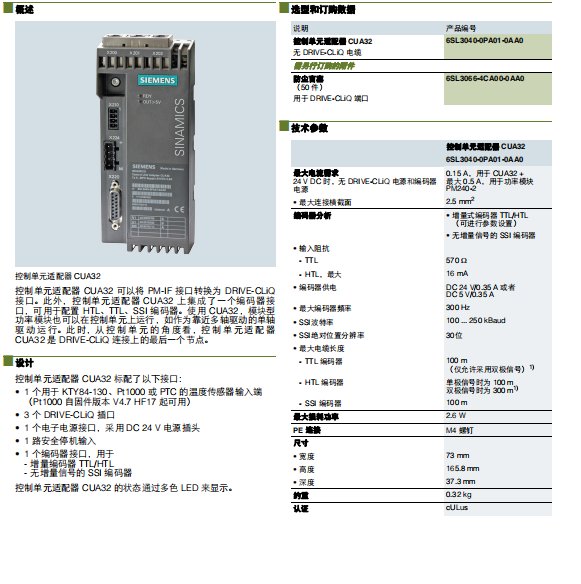 控制单元适配器 CUA32 用于功率模块 PM340/PM240-2 带增量编码器 HTL/TTL 接口