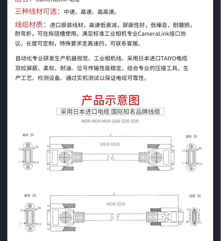 cameralink线缆工业相机网线MDR/SDR26P支持POCL供电 拖链电缆 品牌 | BOHAI | ||