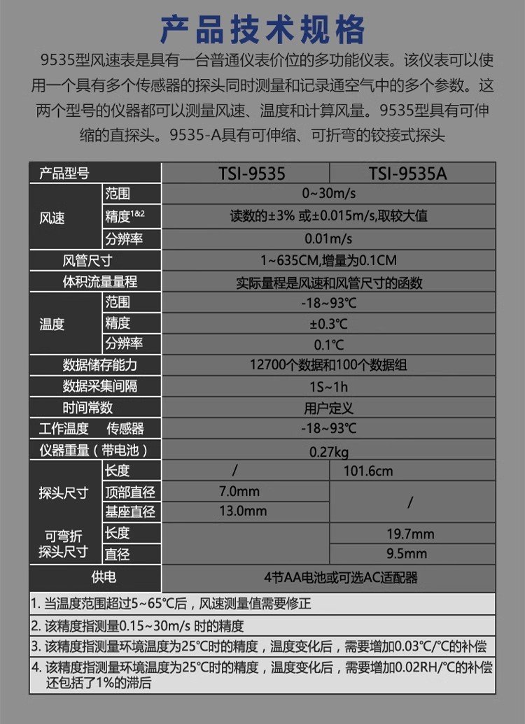 提赛TSI 9535/9535A热线热敏式风速仪风速表手持高精度风速气象仪 品牌 | 美国TSI提赛 | ||