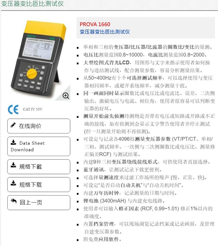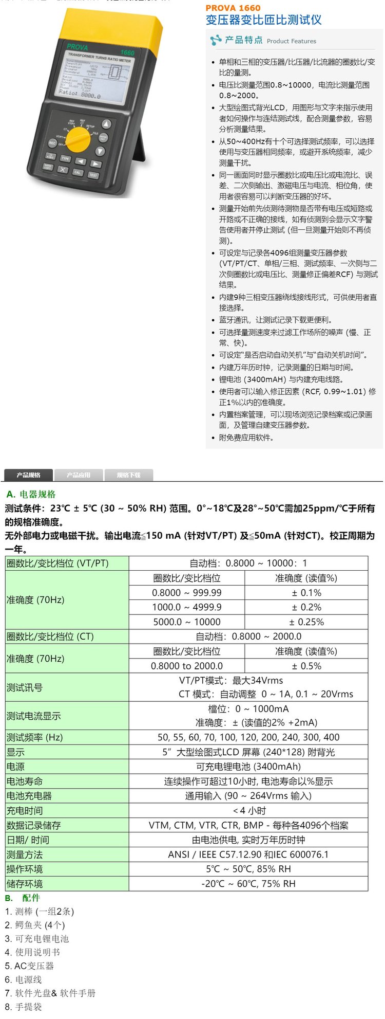 PROVA-1660变压器变比匝比测试仪电压比/圈数比测量 品牌 | 泰仕TES | ||