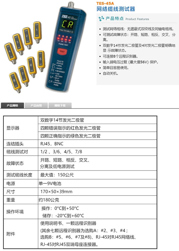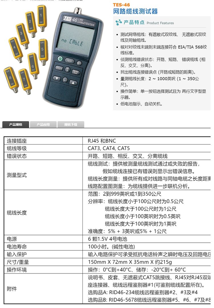 泰仕TES-46/TES-45A 网络线路测试仪网络缆线故障测定仪 品牌 | 泰仕TES | ||