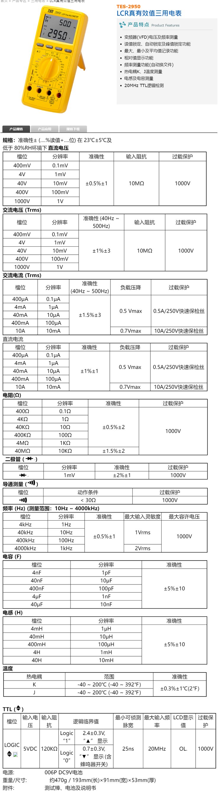 泰仕TES-2900/TES-2950真有效值三用电表/电表LCR万用表 品牌 | 泰仕TES | ||