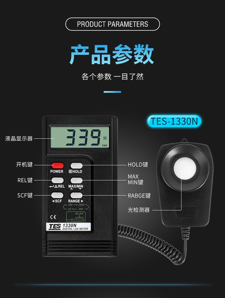 中炫供应 泰仕TES照度计TES-1330N/TES-1332N/TES-1334N 照度仪厂家 品牌台湾泰仕TES