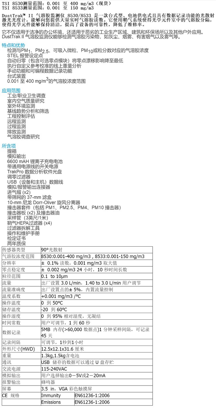 提赛TSI8530/TSI8532数字粉尘仪气溶胶监测仪PM2.5粉尘浓度检测仪 品牌 | 美国TSI | ||