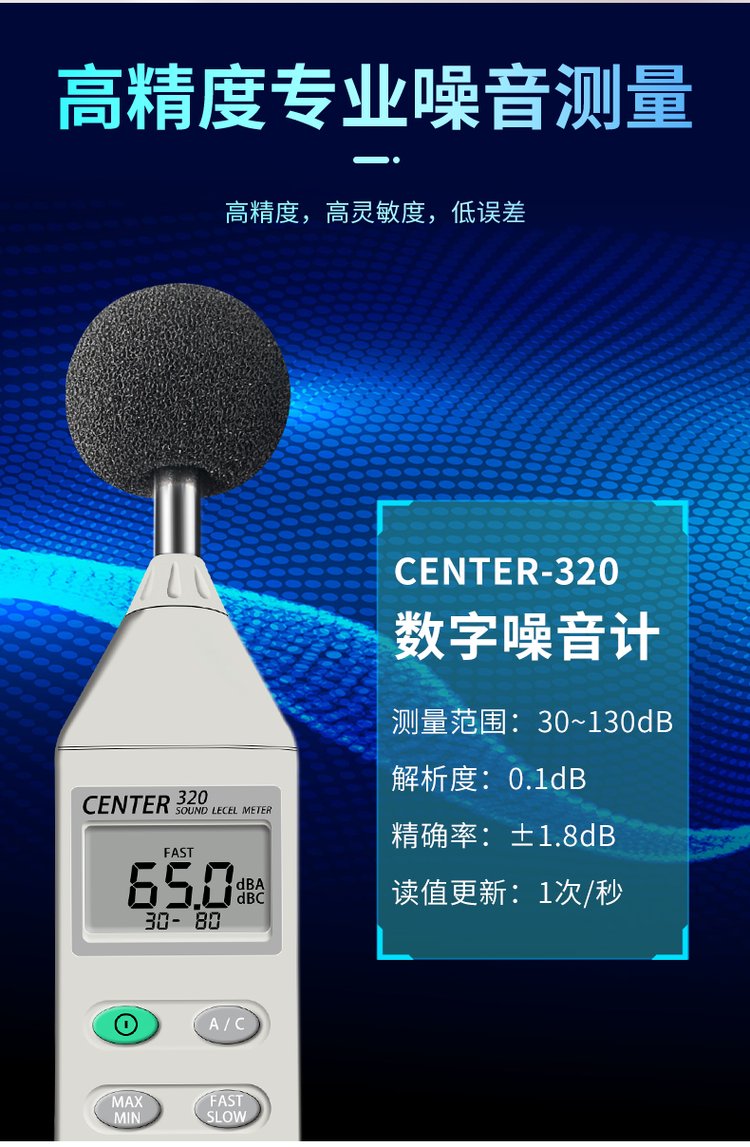 群特CENTER-320/321数字噪音计CENTER-322记录式声级计分贝噪声仪 品牌 | 台湾群特CENTER | ||