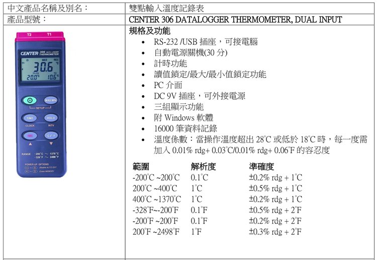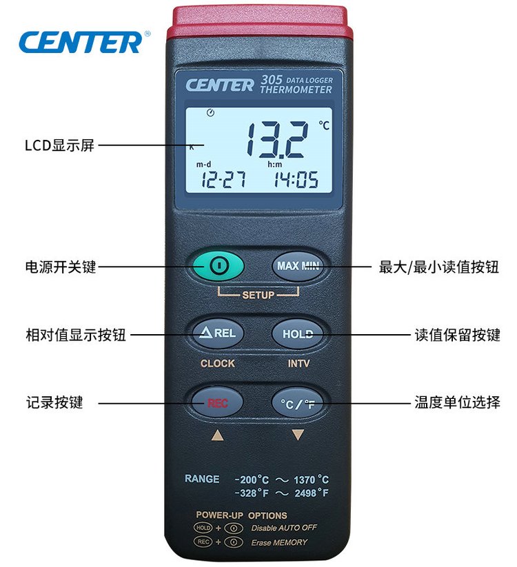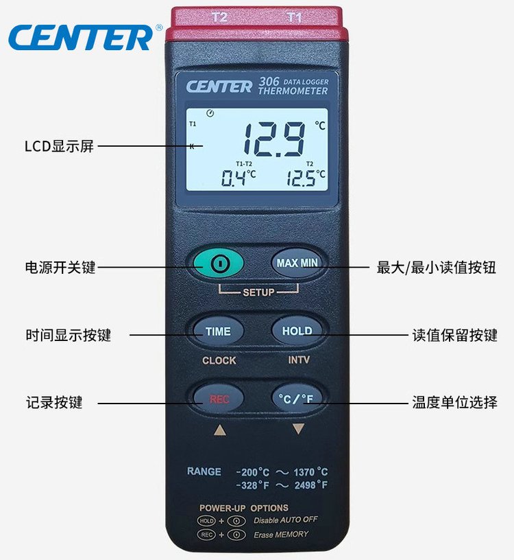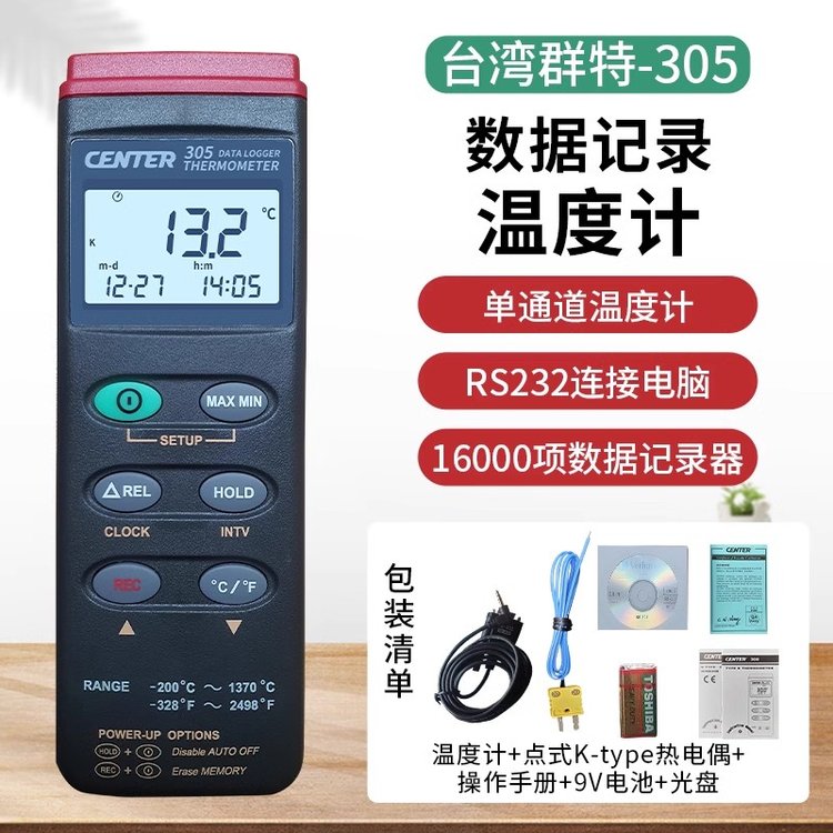 台湾群特CENTER-305/306手持式温度计记录器单双通道热电偶测温仪 品牌 | 台湾群特CENTER | ||