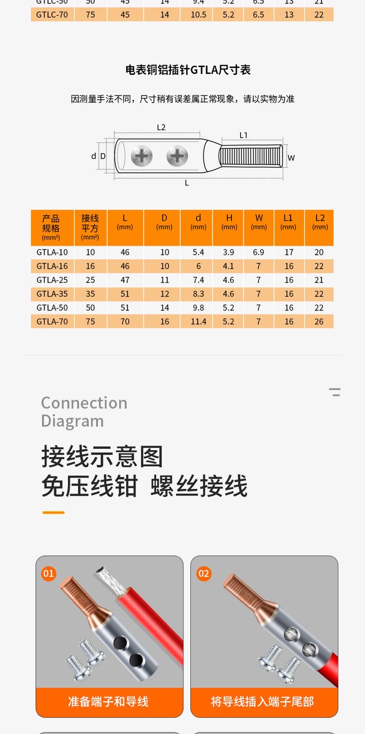 型号 | DTLC16螺丝款铜铝插针 | ||