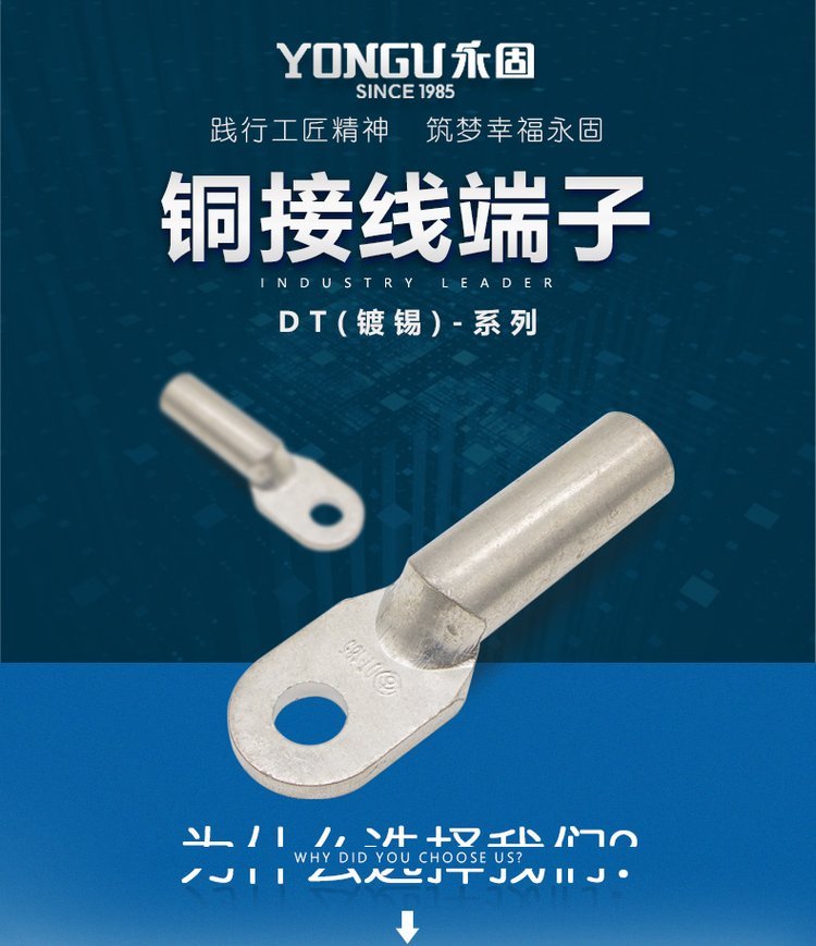 型号1:DTG,是由T3铜管冲压而成,重量略轻于DT,在不需要密封堵油的连接时可代替DT。做工比DT简单快速,价格也相对便宜。
