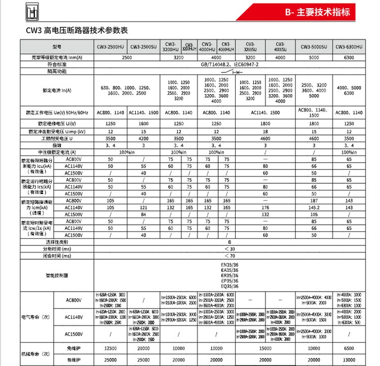 额定电流 | 2000A、2500A、2900A、3200A | ||