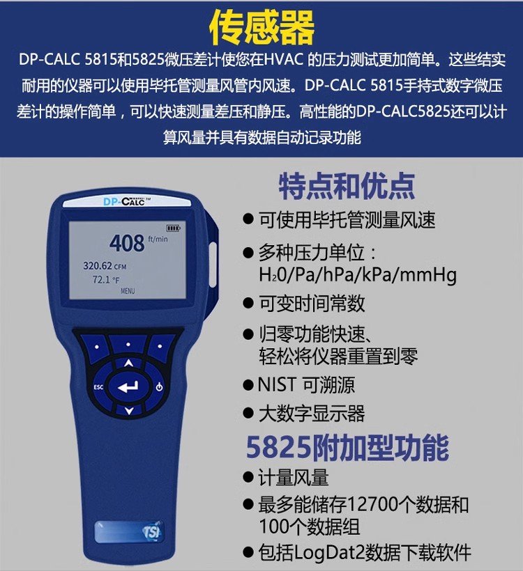 提赛TSI5815/5825数字微压差计高精度压差测试仪压力仪静压风压仪 品牌 | 美国TSI提赛 | ||