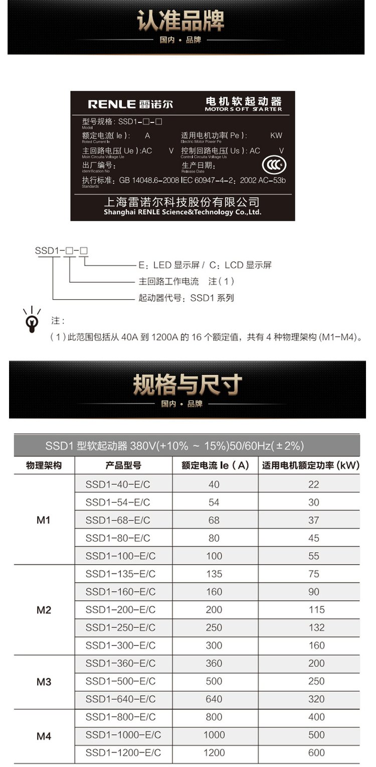 雷诺尔软启动器SSD1-40-E/C22KW 替换JJR2022起动器通用型 品牌 | 雷诺尔 | ||