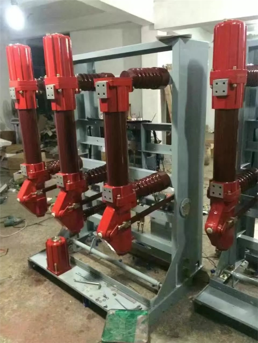 SN10-10系列少油断路器由框架,油箱及传动部分组成。框架上装有分闸限位器,合闸缓冲,分闸弹簧及6只支持绝缘子。传动部分有断路器主轴,绝缘拉杆等。油箱固定在支持绝缘子上。 |