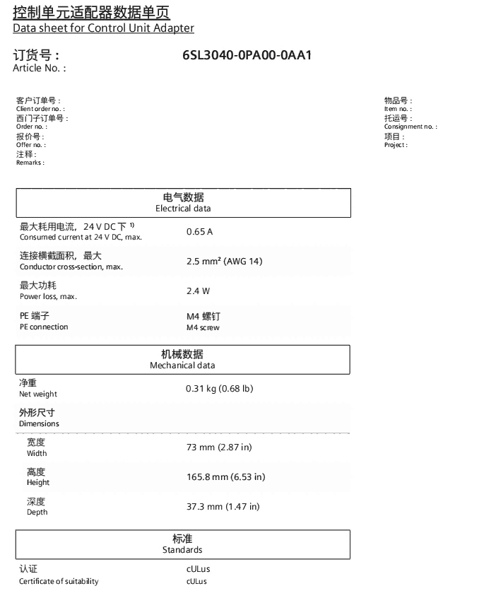 6SL3040-0PA00-0AA1 控制单元适配器 CUA31 西门子 S120
