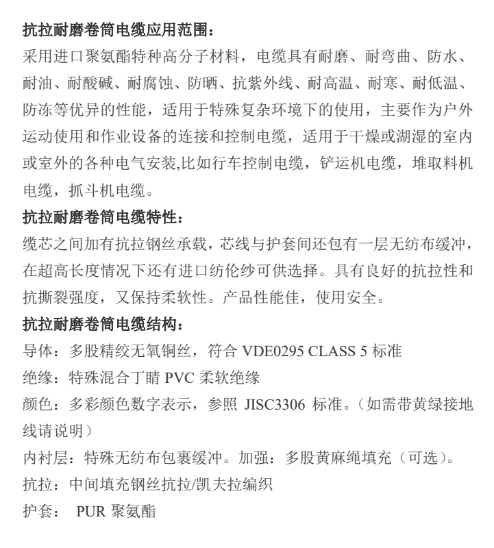 桥式抓斗卸船机电缆Reel flex st 4*16 船用克令吊卷盘电缆