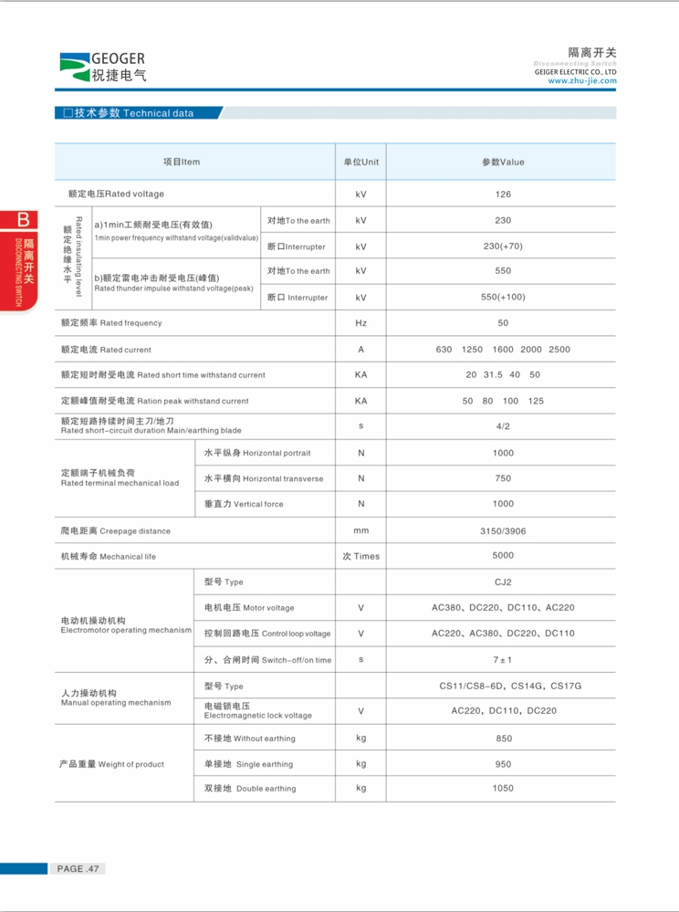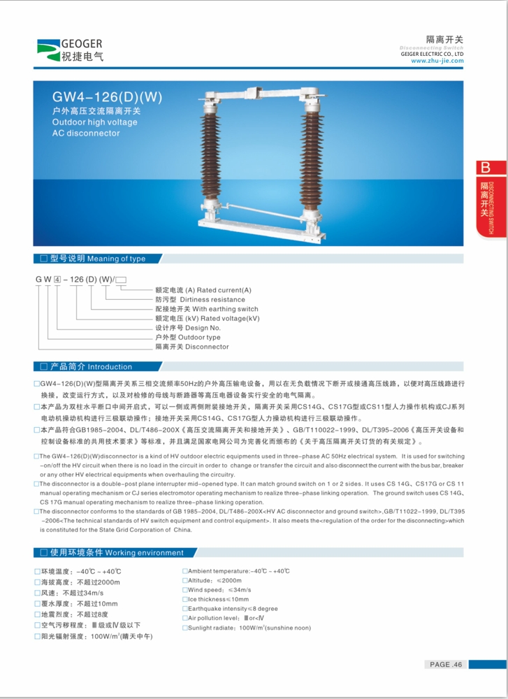 户外35KV双柱水平式隔离开关GW4-40.5D/630-31.5祝捷电气