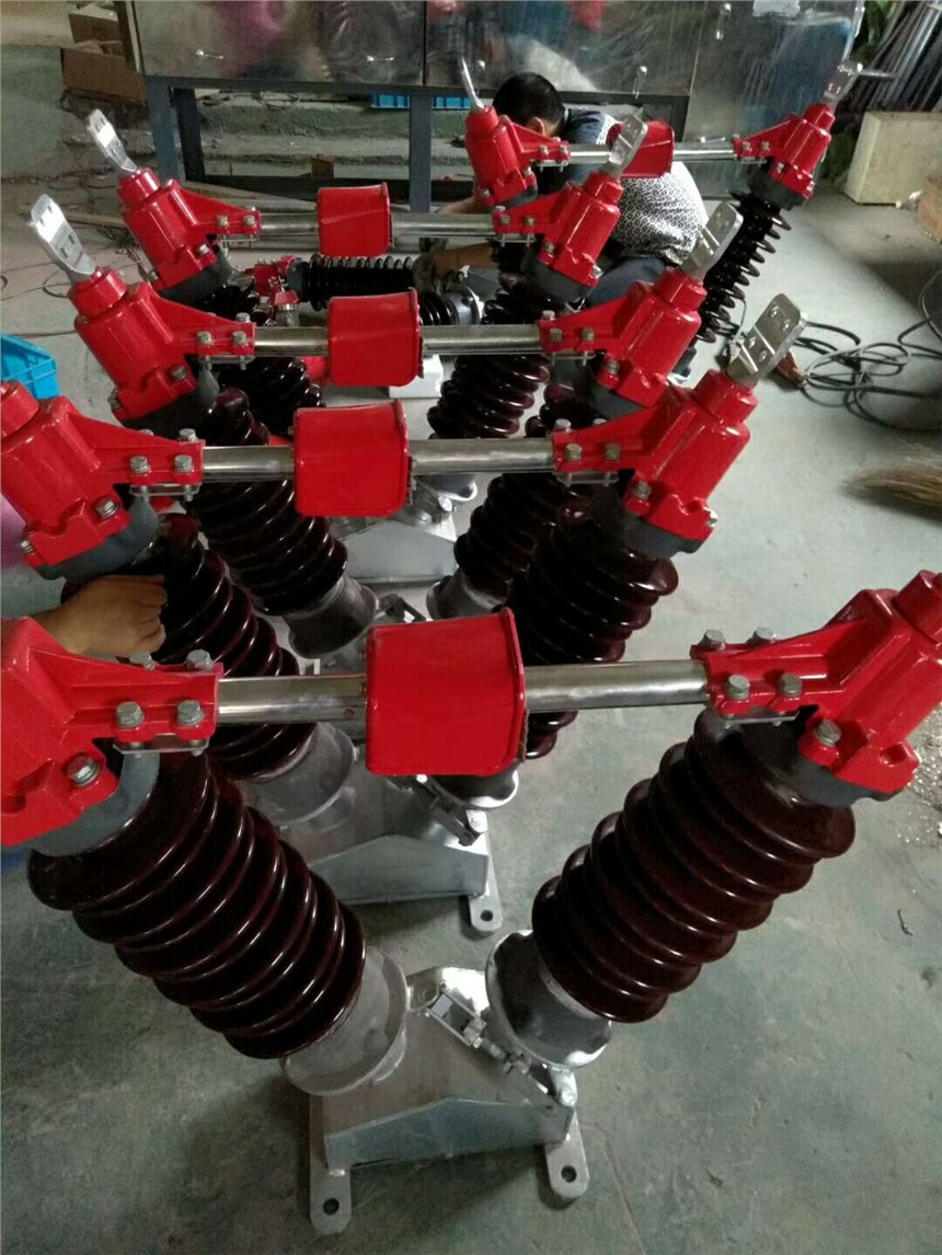 ?本产品为双柱水平断口中间开启式,可以一侧或两侧附装接地开关。90°传动的隔离开关采用CS17型人力操作机构进行三极联动操作;180°传动的隔离开关采用CJ6型电动机操动机构或CS17G型人力操作机构进行三极联动操作;接地开关采用CS17G型人力操动机构三极联动操作。?隔离开关属双柱V形水平开启式,各单级都由基座、支柱绝缘子、出线座及触头等部分组成,由成50°夹角的两个支座、两支柱绝缘子相互夹角地安装在基座两端地轴承上,且与基座垂直。主导电部分分别安装在两支柱绝缘瓷瓶上方,随支柱绝缘瓷瓶作约90°转动。?岀线座中的紫铜编织带软连接分别紧固在导电杆和接线板上,接线板供用户连接线路之用。?中间触头部分的触指成对装配,采用自力型触指,其形式为转入式,以减少分、合闸时触头与触指间的磨损,提高使用寿命。?隔离开关附有接地开关时,主导电回路与接地开关的连锁用基座上的扇形板与弧形板保证,在主导电回路合闸时,接地开关不可合闸,接地开关合闸时,主导电回路不可合闸。