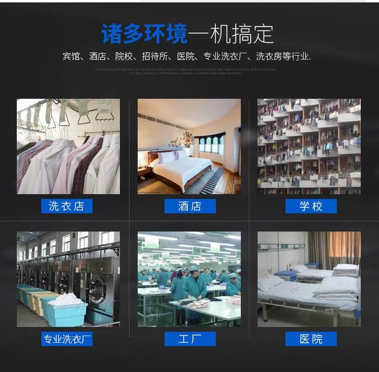 全自动洗脱机免除了普通型洗衣机和脱水机繁琐的工作程序,只需将洗涤物放置在洗脱机内,设定好洗涤、漂洗及脱水程序,更有更加简便的"一键操作"程序,便可轻松洗涤衣物!用于宾馆、饭店、医院及洗染等行业。是洗涤棉、毛、麻、化纤等织物的理想设备尺寸规格:各个型号的尺寸规格不同,需具体对应。
