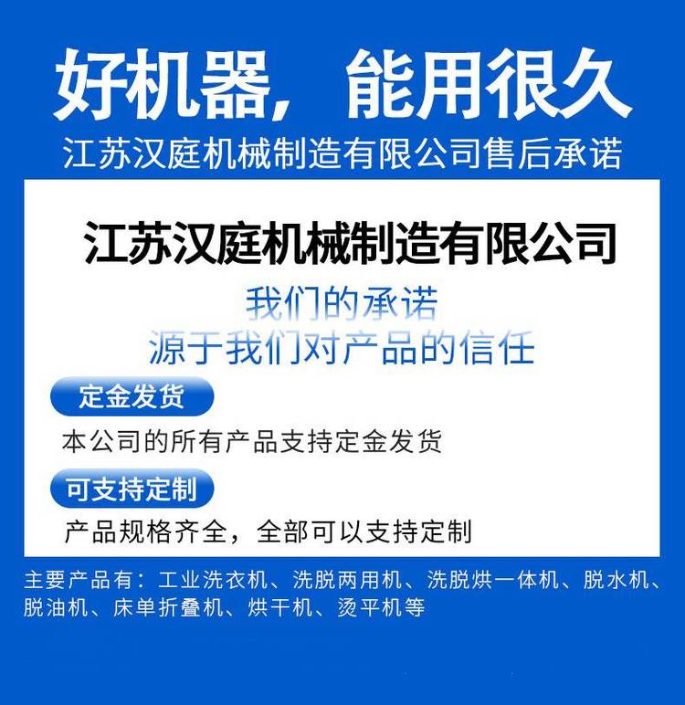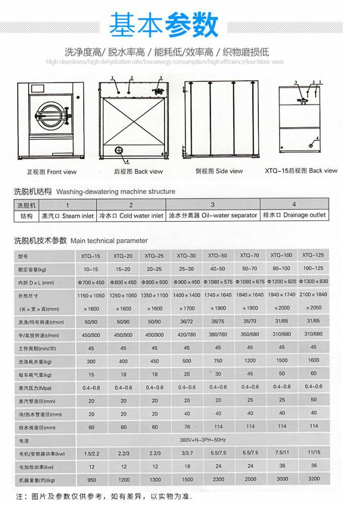 全自动洗脱机免除了普通型洗衣机和脱水机繁琐的工作程序,只需将洗涤物放置在洗脱机内,设定好洗涤、漂洗及脱水程序,更有更加简便的"一键操作"程序,便可轻松洗涤衣物!用于宾馆、饭店、医院及洗染等行业。是洗涤棉、毛、麻、化纤等织物的理想设备尺寸规格:各个型号的尺寸规格不同,需具体对应。