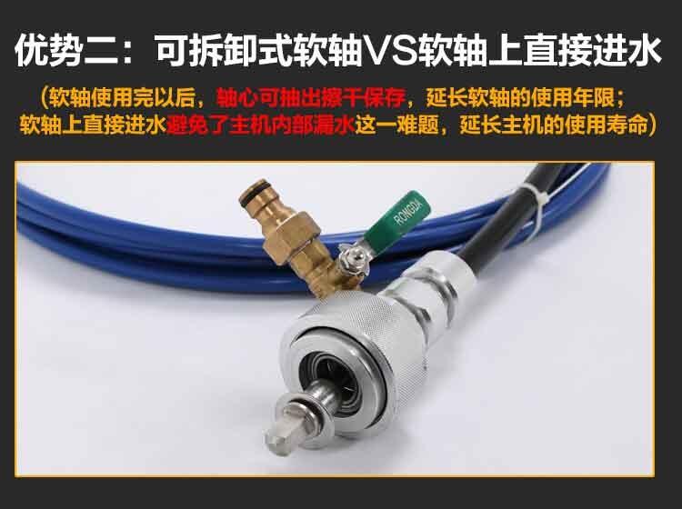 目前整个国内市场软轴轴心连接很多都是使用墩压的方式,轴心在工程完工之后不能从护套里抽出晾干保存,这样软轴轴心得不到很好的保养,时间一长容易生锈,等到下次用的时候很容易出现断裂的情况,针对这一国际难题我公司推出新软轴连接设计方案:轴心可拆卸式设计,工程完工后轴心可以从软轴护套内抽出晾干保存,延长软轴使用寿命,解决软轴保养难的问题。