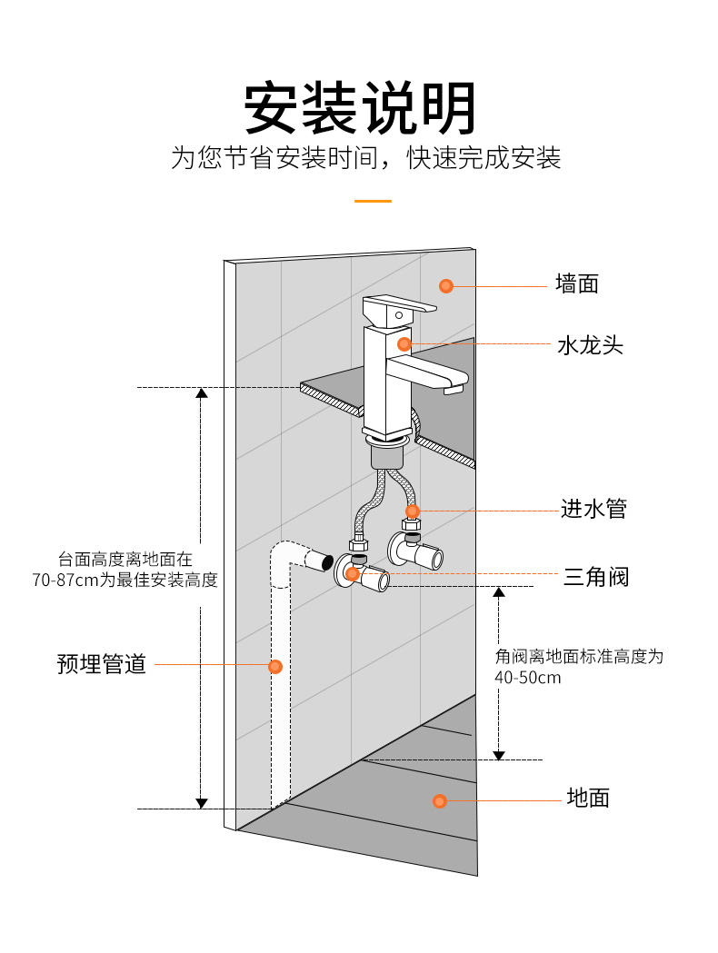 厂家直销埃美柯洗手盆龙头全铜家用面台盆冷热水龙头送软管2根