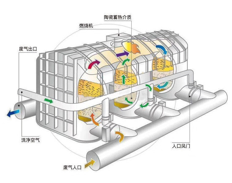 在没有明火的状态下发生燃烧化学反应。将废气中的成分燃烧成二氧化碳、