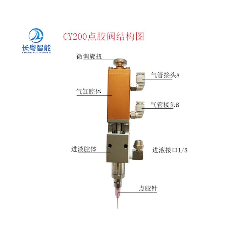 CY200精密点胶阀是款最经济实用型的点胶阀之一,不仅完全具备了高性能和品质,而且性价比高,适应于从高粘度到低粘度流体大量或定量吐出。如UV胶、黑胶,硅胶,环氧树脂,线路板点胶,染料、涂料、硅油等。断胶利落干净,针头无残留,有较强的耐久性,进液部位采用耐腐蚀性SUS不锈钢材料,耐化学性,耐用性强,流量大。