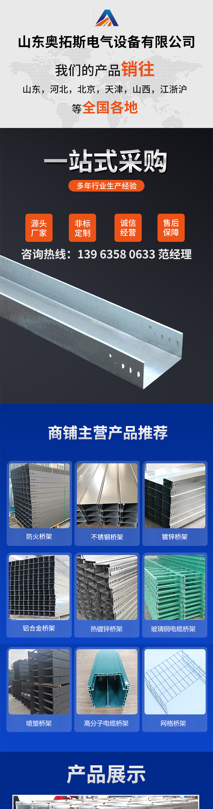 主营产品 | 防火 喷塑 不锈钢 热镀锌 热浸锌 铝合金 网格 高分子 玻璃钢 电缆桥架 | ||